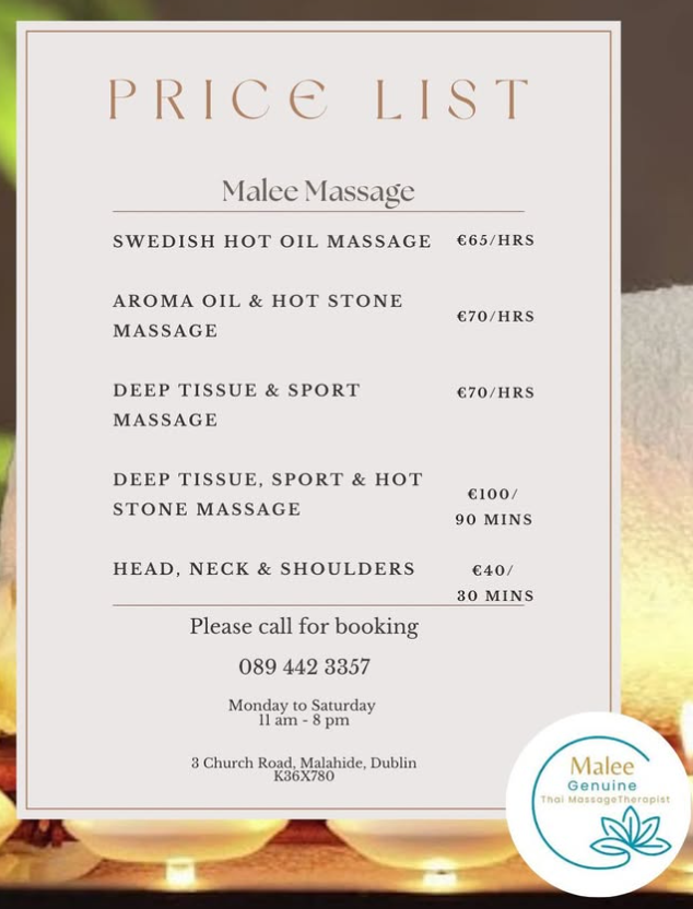 At Malee Massage, we provide a serene and calm environment where you can escape life’s stresses. Our therapist, Malee, has 15 years of experience, dedicated to helping clients achieve the ultimate relaxation and rejuvenation